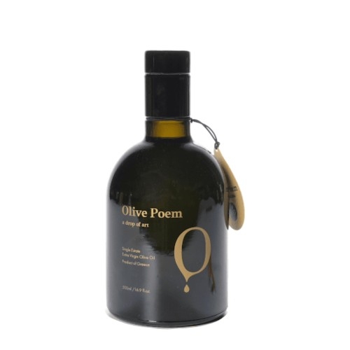 Olive Poem Drop of Art to ekologiczna oliwa extra virgin wczesnego zbioru (early harvest), produkowana w limitowanych ilościach w systemie single estate. Powstaje z owoców odmian Koroneiki i Myrtoelia, tworząc unikalny blend o wyjątkowym profilu smakowym i bardzo wysokiej zawartości bioaktywnych fenoli.